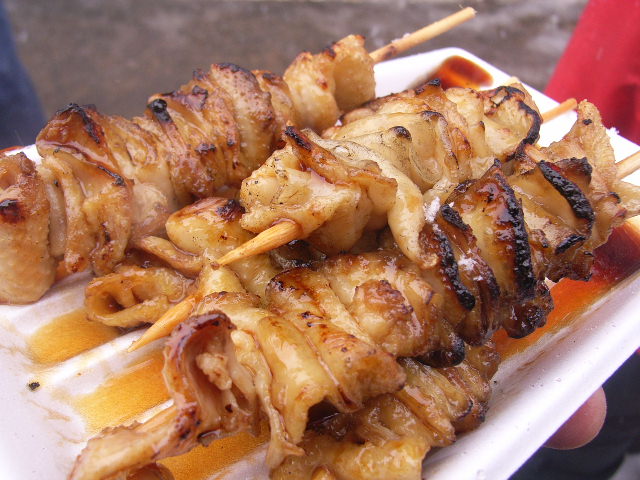 たぬき汁を平らげた後、焼き鳥に心惹かれそれも買った。