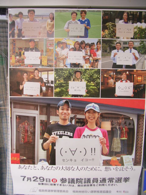 最後に、帰りに駐車場に張ってあった参院選(当時)のポスター。