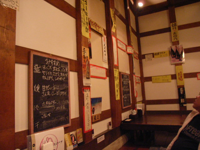 高い天井、ほどよくくたびれた漆喰壁、ベタベタ張られたメニュー、実にすばらしい。