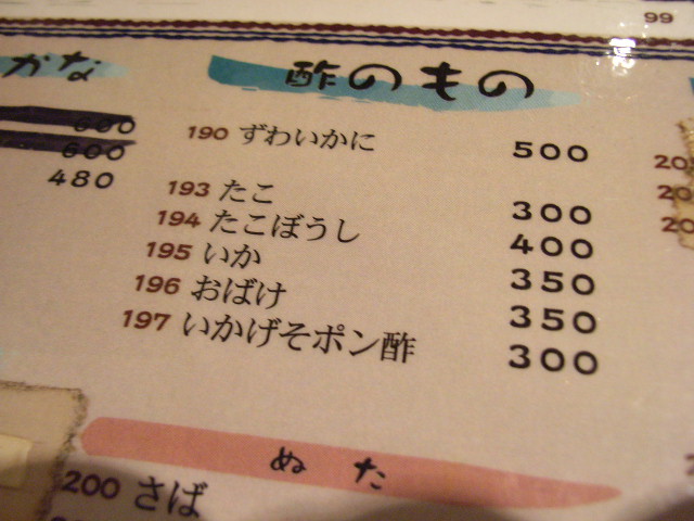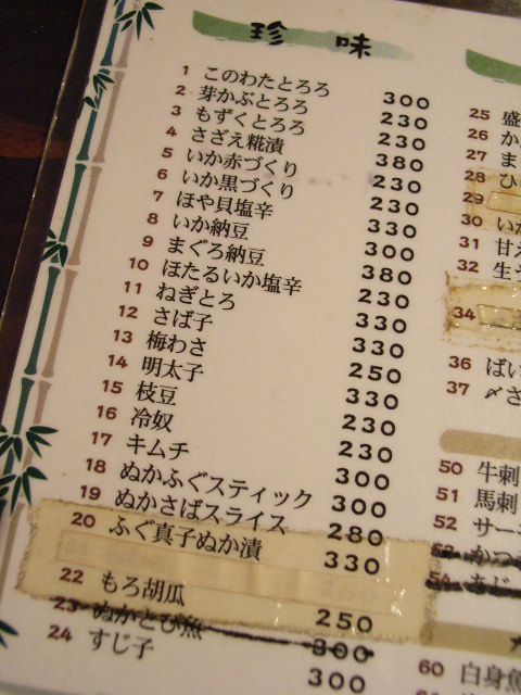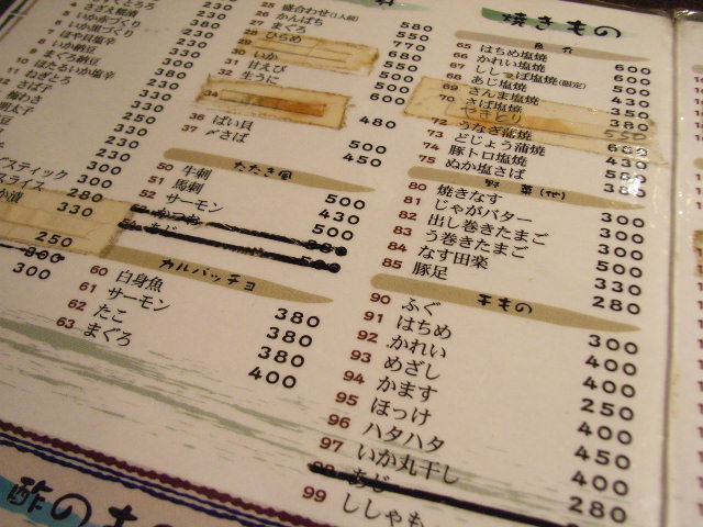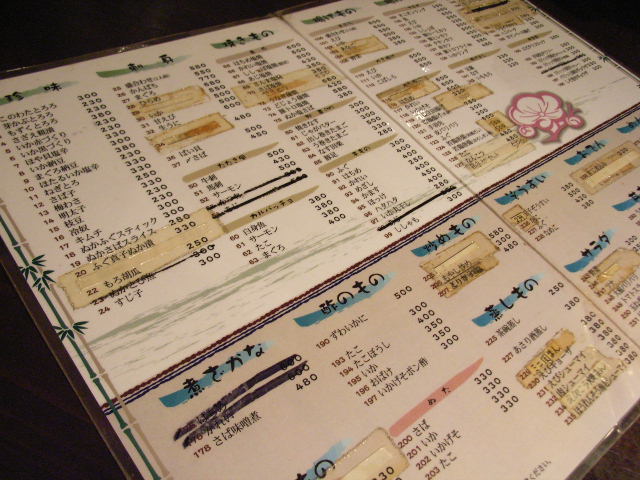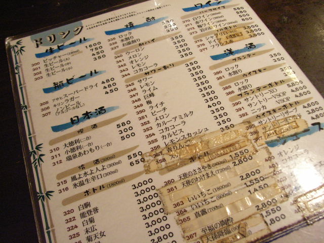 マジックやセロテープで修正されまくりなメニューもかなりの好ポイントなんだけど、メニューを見ていくうちに脳内のドーパミン、だだ漏れ状態に。
