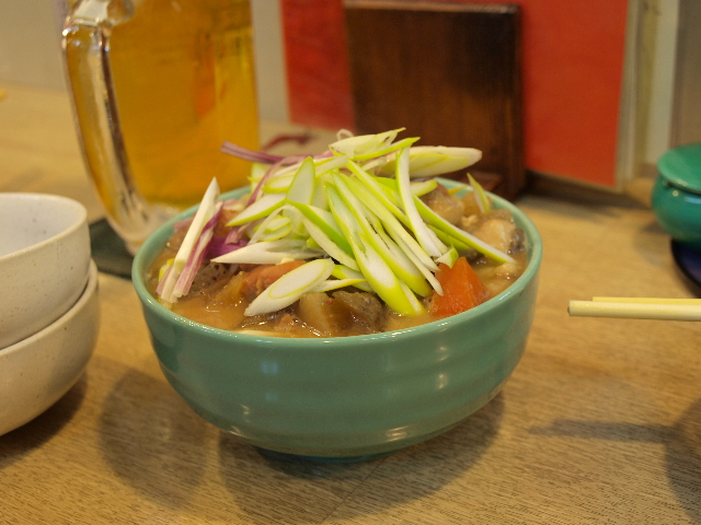 ここんちのもつ煮はボリューミーで普通の店の2人前くらいの量があるので、複数人数で取り分けるのが吉。
