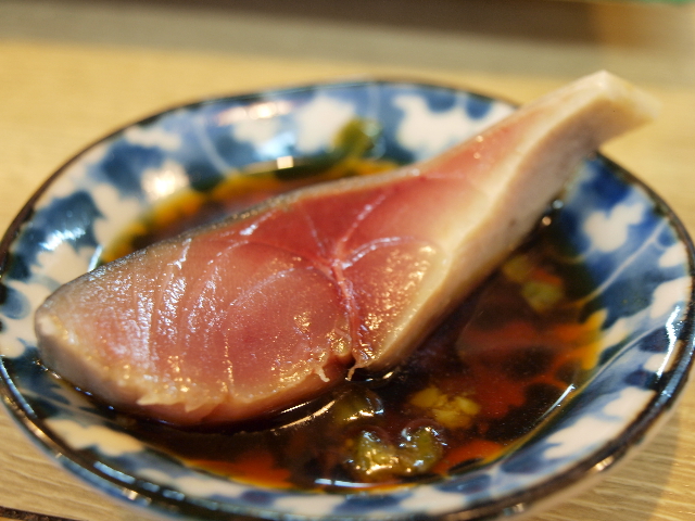 まあそんなこんなで久保田の次は、お茶漬けさんお薦めの緑川のぬる燗を飲っていると、マスターがニヤリと笑いながら「これサービス」といってあるものを出してくれた。