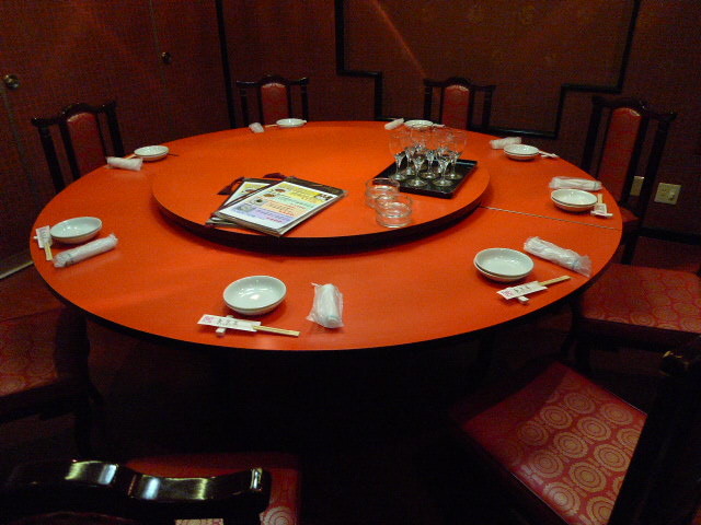 卓の中央に丸いターンテーブルが有り、これをグルグル回して料理のやり取りをするようになっており、ブロガー的に料理の写真撮影をするのにも便利!