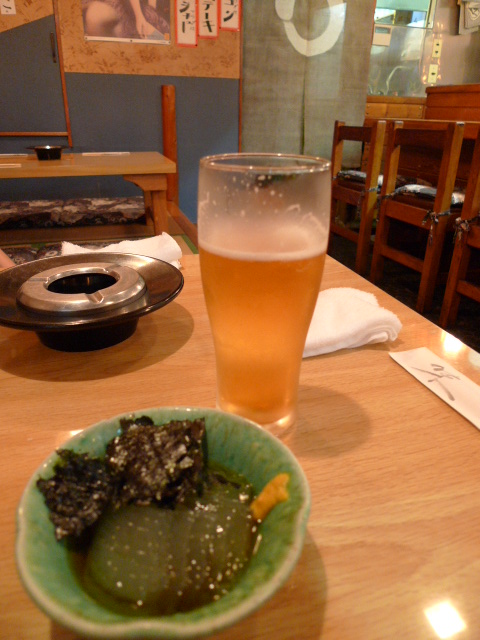ここは冷蔵庫で冷やして置いてないらしく、ポットの氷で酒が冷えるまでちょっと時間が掛るので早めに注文しておきましょう。
