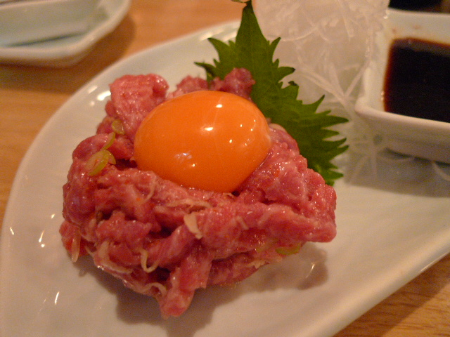 牛刺しって言うより、どっちかって言ったらユッケみたいな感じ。ユッケよりも大きめに切ってあるけど。