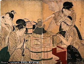 長岡中央青果の鈴木会長によると江戸時代の浮世絵師・喜多川歌麿の絵にも「巾着茄子」らしき茄子が描かれているものがあるという。