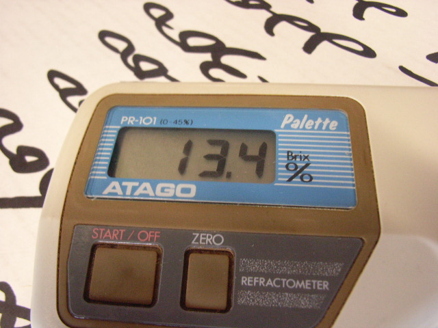 そんなわけで試食のついでに糖度を測る場合は、この中心部の果肉を絞って糖度計で測定する。