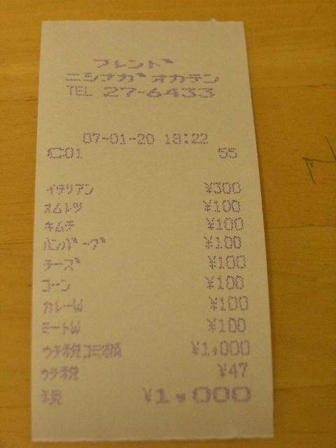 レシートを受け取り、テーブルに着くと早速レシートの確認をする。