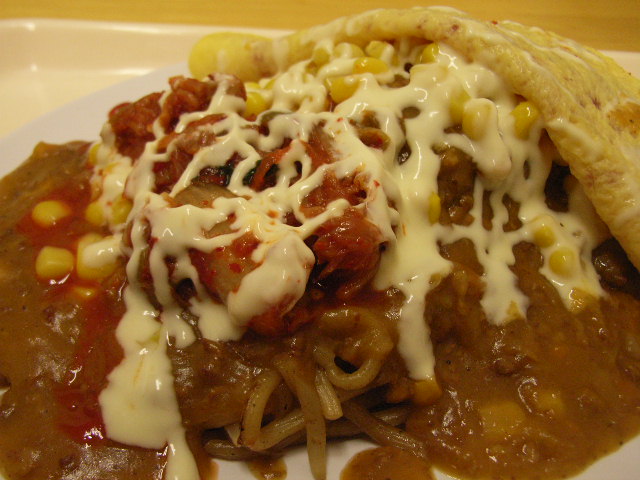 どうやら片側をミートソース、反対側をカレーソースという盛り付けにしたらしい。