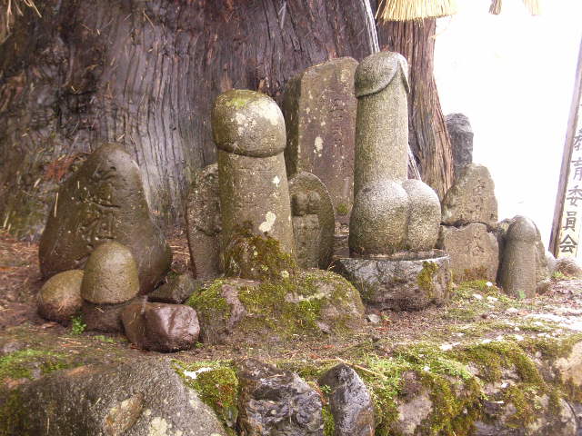 狭い石段に並びながら脇の方を見ると、ここにミニチュアみたいな石のほだれ様がある。