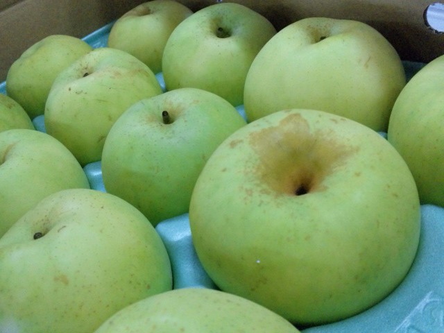 でもどうやら梨の表面にサビの出やすい品種らしく、ネット上の秋麗の写真はだいたい表面に茶色いサビが出ているものだった。